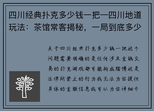 关于“巴士扑克”和“巴士棋牌”,根据现有信息,它们可能指代两种不同类型的概念:一种是指具体的Flash小游戏《巴士扑克牌》,另一种则可能是一个集合了多种棋牌游戏的“巴士棋牌”平台。为了帮助你更好地区分,下面我来详细介绍一下。 巴士扑克牌 这通常指的是一款经典的单人Flash小游戏,其核心玩法是围绕...